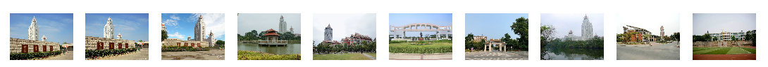 打印从索引中查找出的前十个图像,其中第一幅为查询图像本身,之后的图像,根据匹配效果由前往后排序