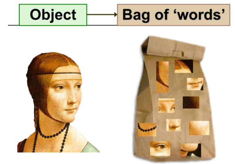 为了表示一幅图像,我们可以将图像看作文档,即若干个“视觉词汇”的集合,同样的,视觉词汇之间没有顺序。