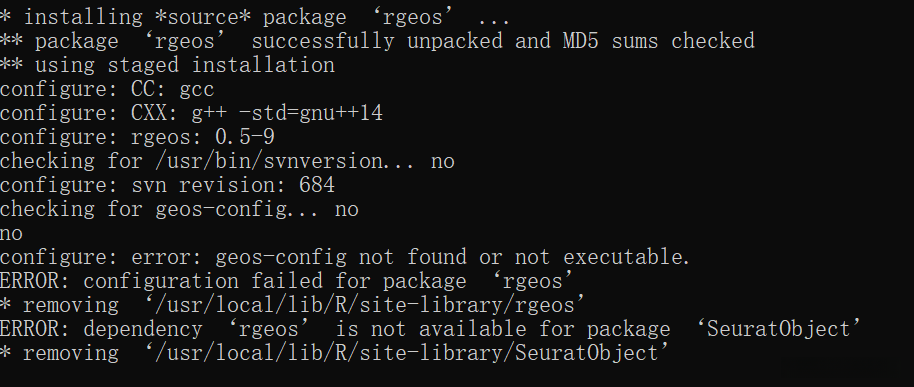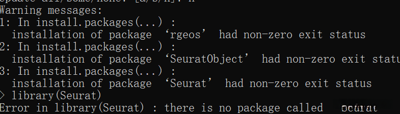 提示rgeos,SeuratObject包发生错误。我们一个一个解决。