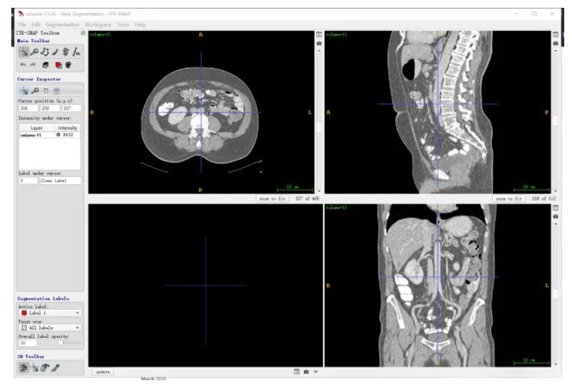 首先介绍一下医学图像可视化软件ITK-SNAP, 可以作为直观感受医学图像3D结构的工具,也可以用来做为分割和检测框标注工具,免费,很好用,安利一下:ITK-SNAP官方下载地址: http://www.itksnap.org/pmwiki/pmwiki.php**。此外,mango** (http://ric.uthscsa.edu/mango/)**是另一个非常轻量的可视化软件,也可以试试。我一般用ITK-SNAP。**