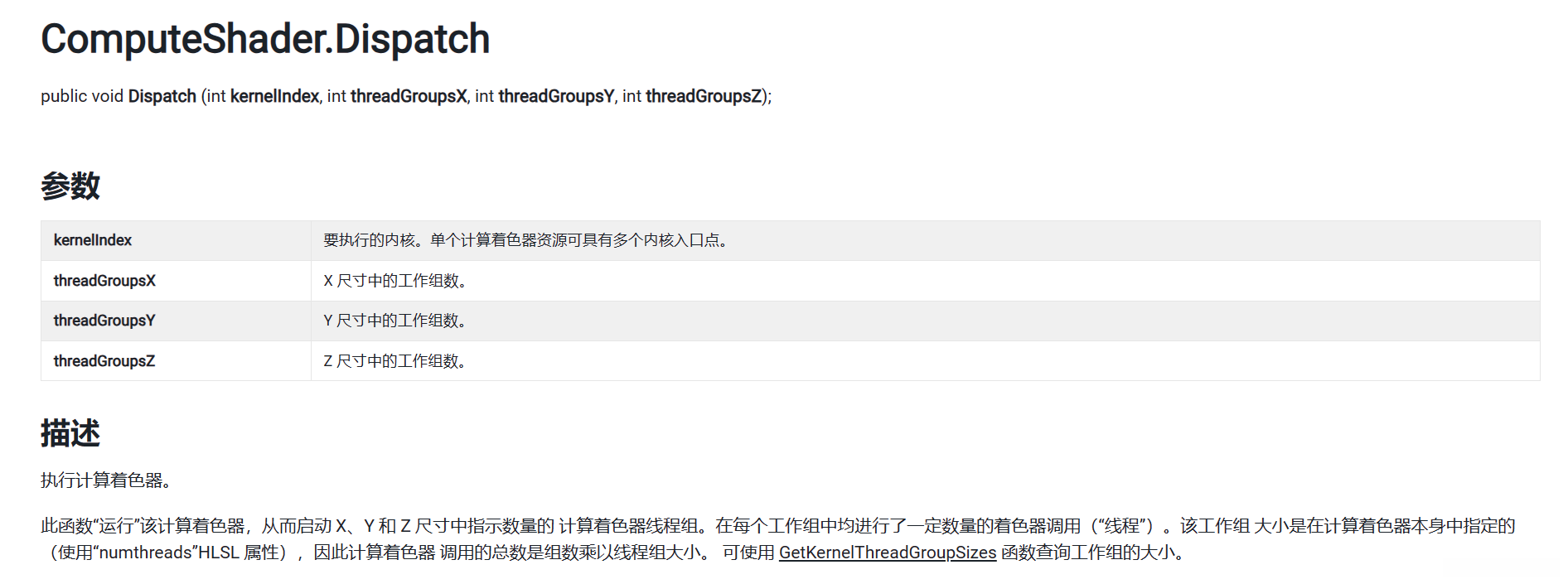 这里就要说下ComputeShader.Dispatch这个函数了,也就是帮我们分配并且启动线程组的函数。