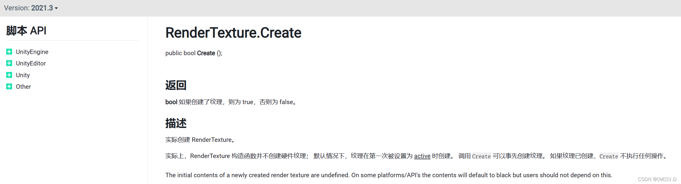 另外说下Render.Create()函数,引用下unity官方文档的解释。