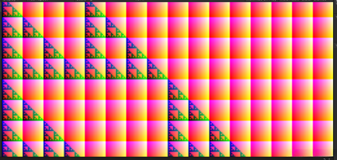 Result[id.xy] = float4(id.x & id.y, (id.x & 15)/15.0, (id.y & 15)/15.0, 0.0);