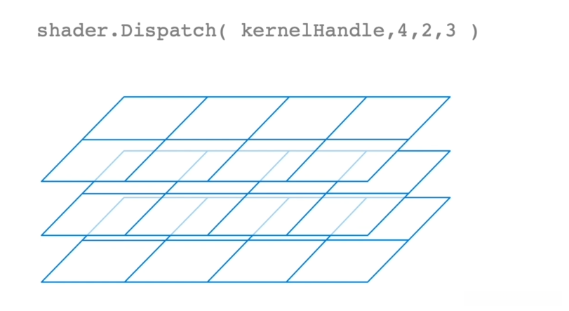 一个compute shader包含一个或者多个kernel。每个Kernel都可以通过mono behaviour 脚本调用,通过使用computeshader的dispatch方法。