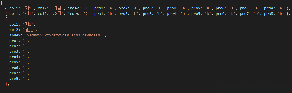 其中tableList是从后台获取的一组数据;一般情况下是一个数组;spanArr则被用作存储每一行记录的合并数;而pos则是(spanArr)中的一个索引值。