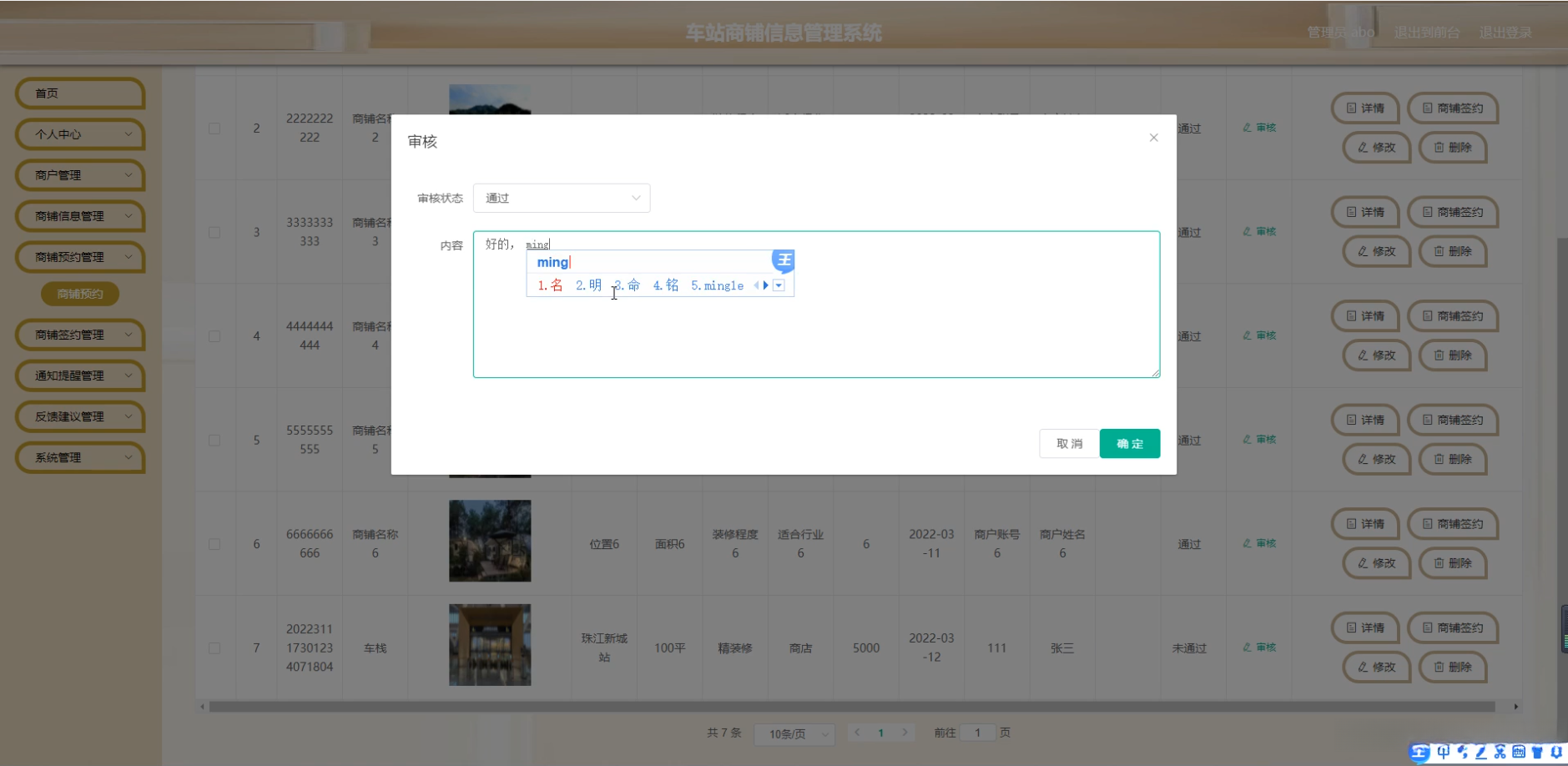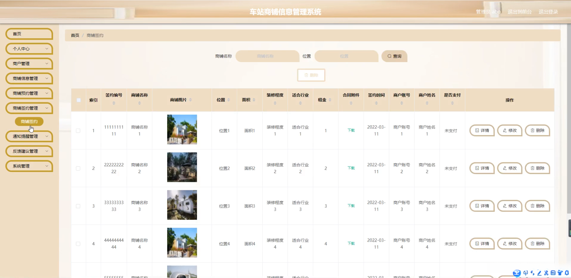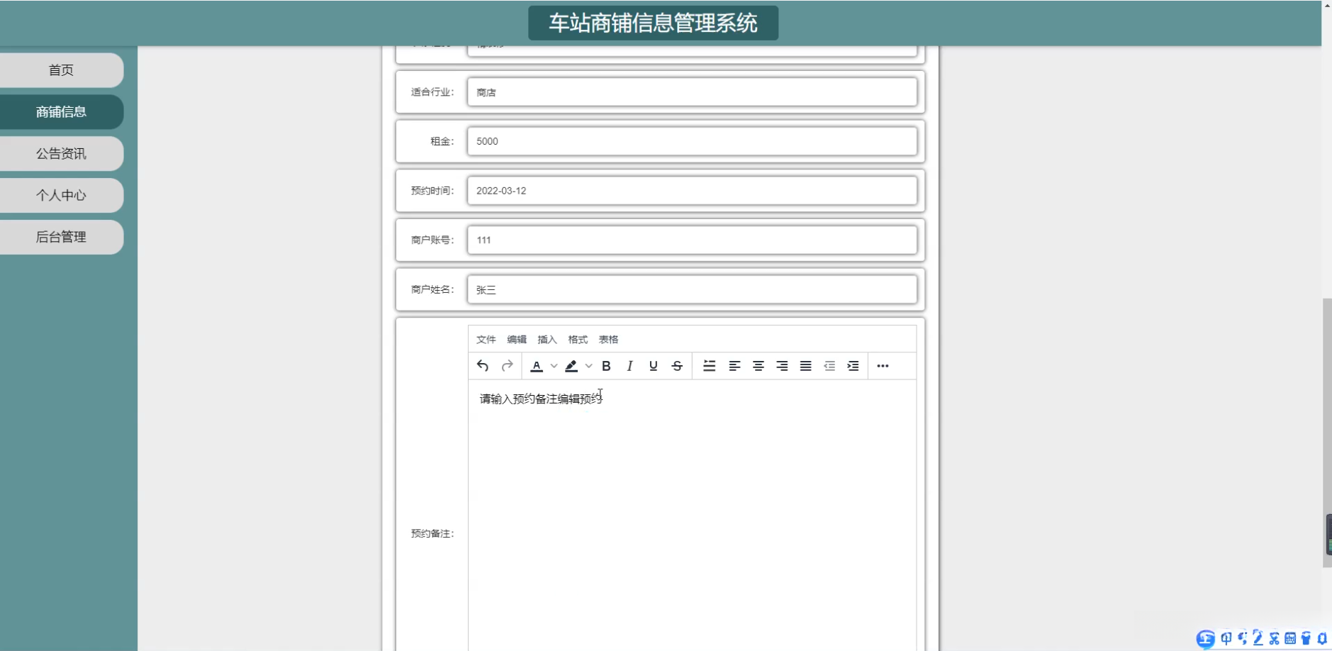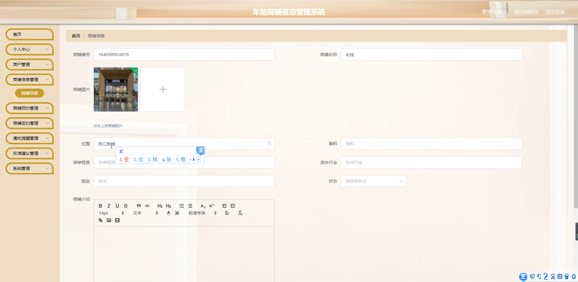 题目:车站商铺信息管理系统