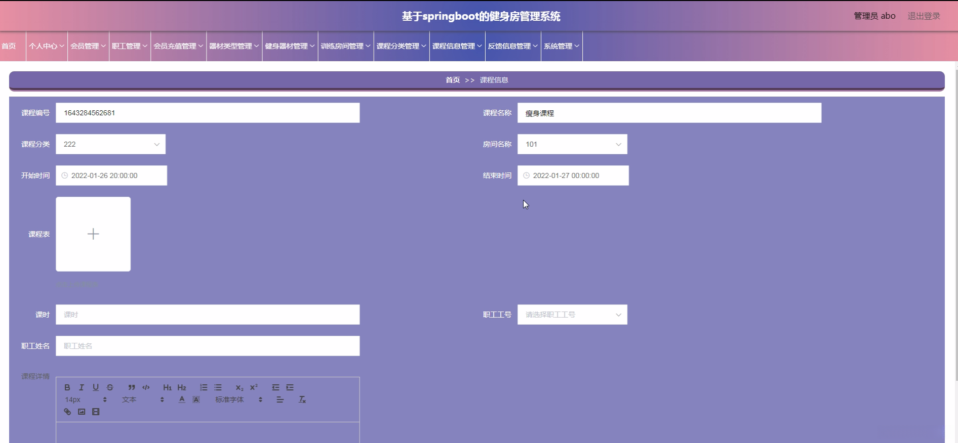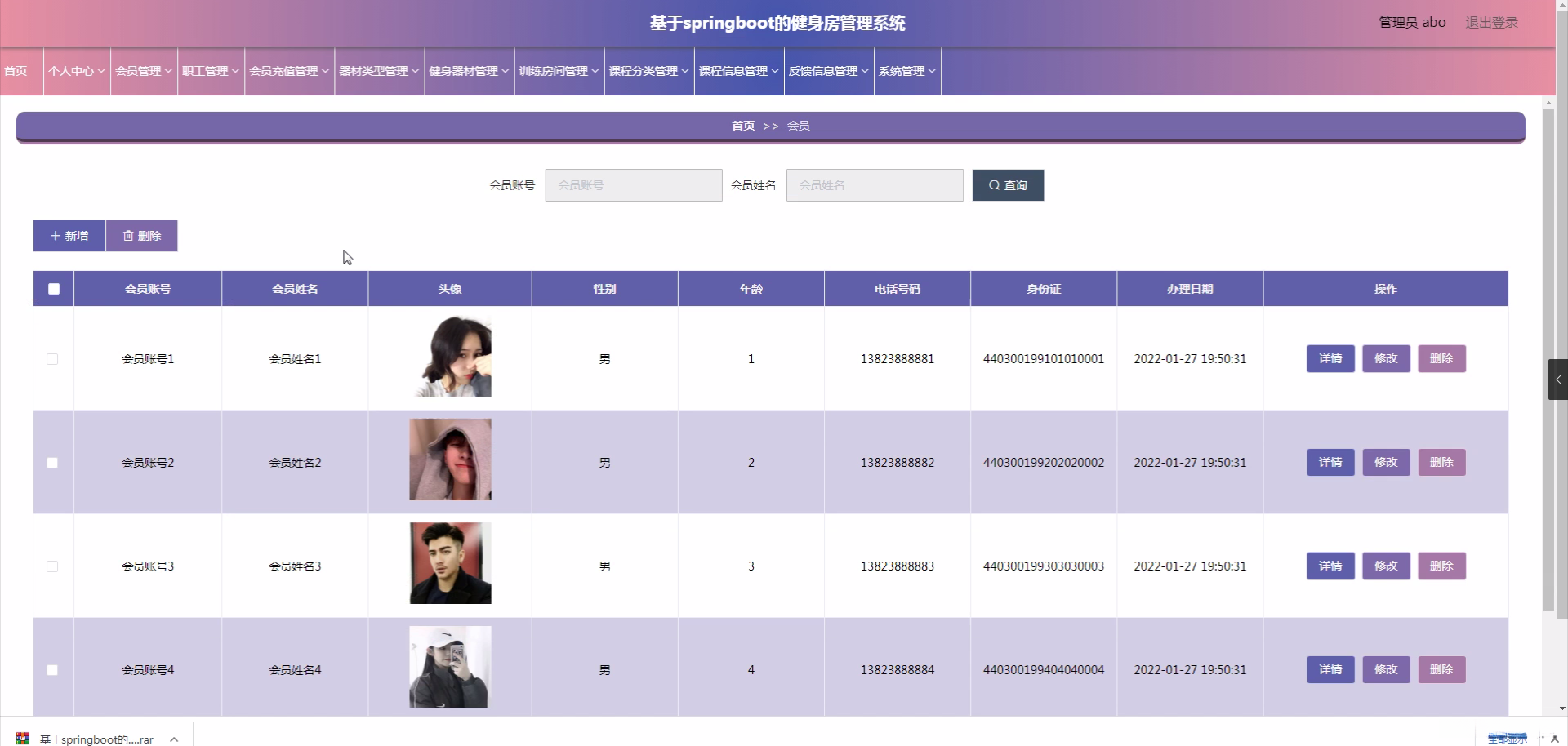 springboot毕设项目健身房管理系统gm80h(java+VUE+Mybatis+Maven+Mysql)