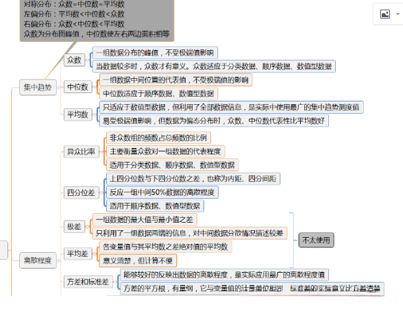 均值与中位数接近表明异常值的影响较小;对于多峰的数据分布,则最好将它们区分开以便逐一进行描述。