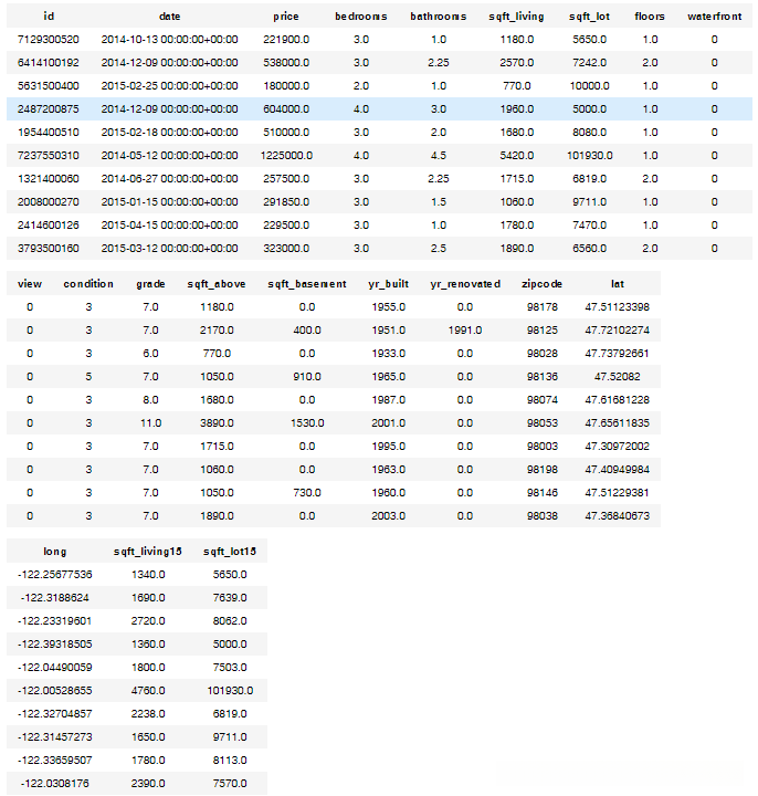 my_features = ['bedrooms', 'bathrooms', 'sqft_living', 'sqft_lot', 'floors', 'zipcode']