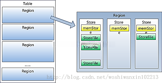 2、 Table在行的方向上分割为多个Region ;