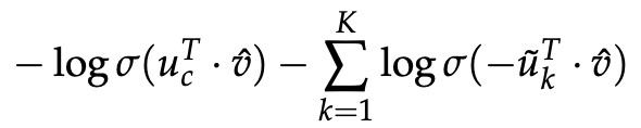 对于每个训练步骤,我们可以只采样几个反例,而不是遍历整个词汇表! 我们从噪声分布 (Pn(w)) 中“采样”,其概率与词汇频率的排序相匹配。 为了增加我们对问题的表述以包含负采样,我们需要做的就是更新: