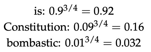是什么? 虽然有很多关于最佳近似的讨论,但似乎效果最好的是提高到 3/4 次方的 Unigram 模型。 为什么是 3/4? 下面的示例可能有助于获得一些直觉: