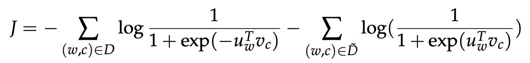 请注意,D̃是“假”或“负”语料库。 我们会有像“stock boil fish is toy”这样的出现概率很低的不自然句子。 可以通过从词库中随机采样这个负样本来动态生成 D̃。
