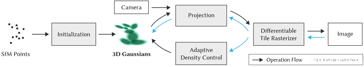3DGS use 3D Gaussians for a more flexible scene representation, avoiding the need for MVS geometry and achieving real-time rendering thanks to our**tile-based** rendering algorithm for the projected Gaussians.