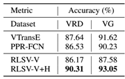 本文在VRD与VG上均进行了实验,在VRD中保留了一个top-10列表并包含共计169个属性及75类物体;而VG则包含284个实体、153种关系以及同样也保留了169个属性(具体是否为top-169未作说明)。平均每张图片约7成的三元组用于训练