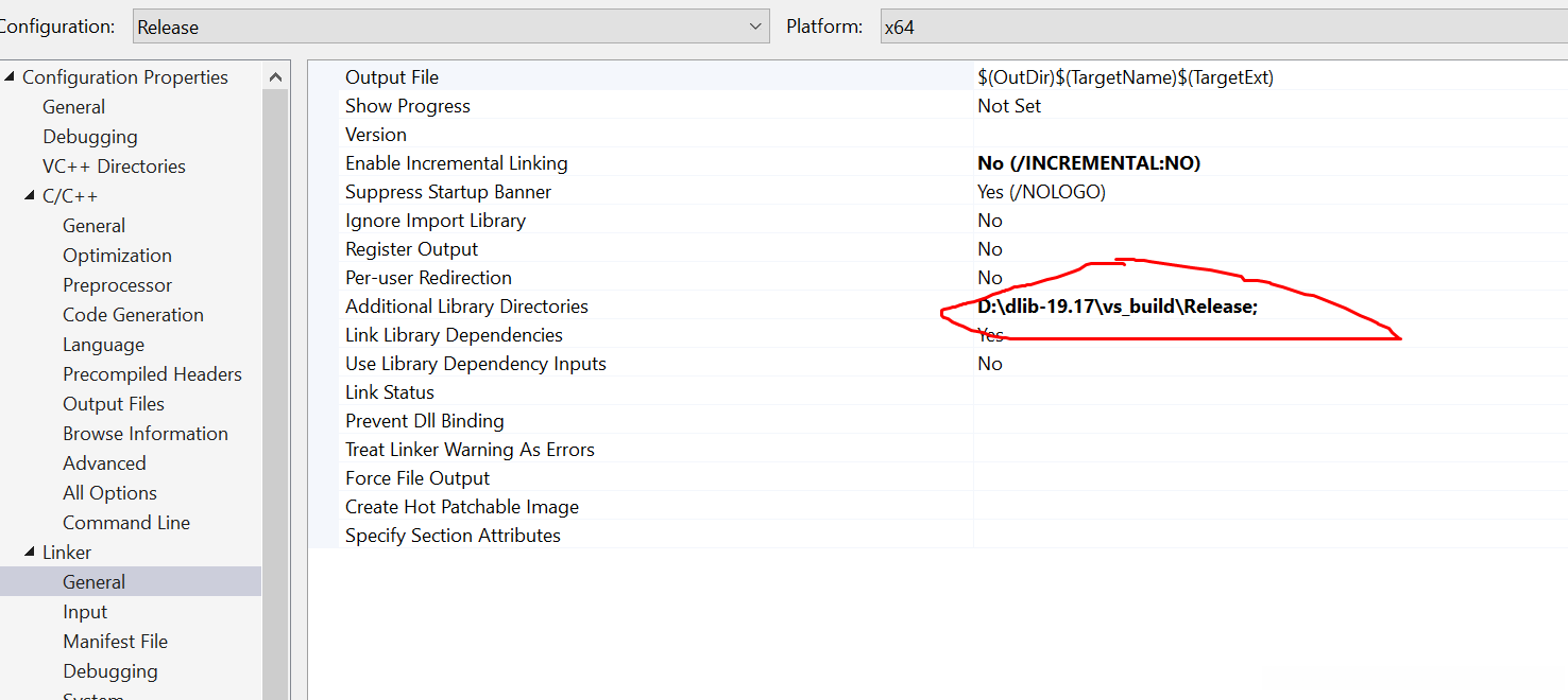 11.将Release 文件下的lib文件(原文件名太长,我改了文件名)添加到input里
