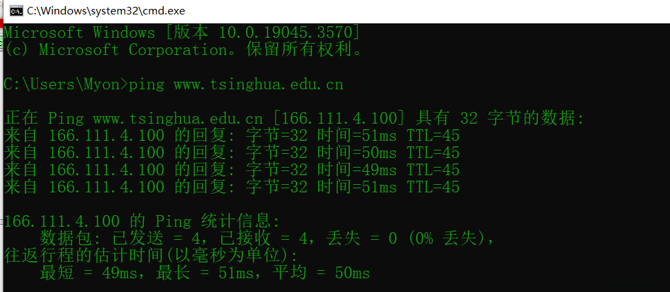 通过在命令行窗口执行ping命令测试清华大学的官网,可以确定其是否可达,具体命令为ping $www.tsinghua.edu.cn,同时也可以查询该网站的可达性。