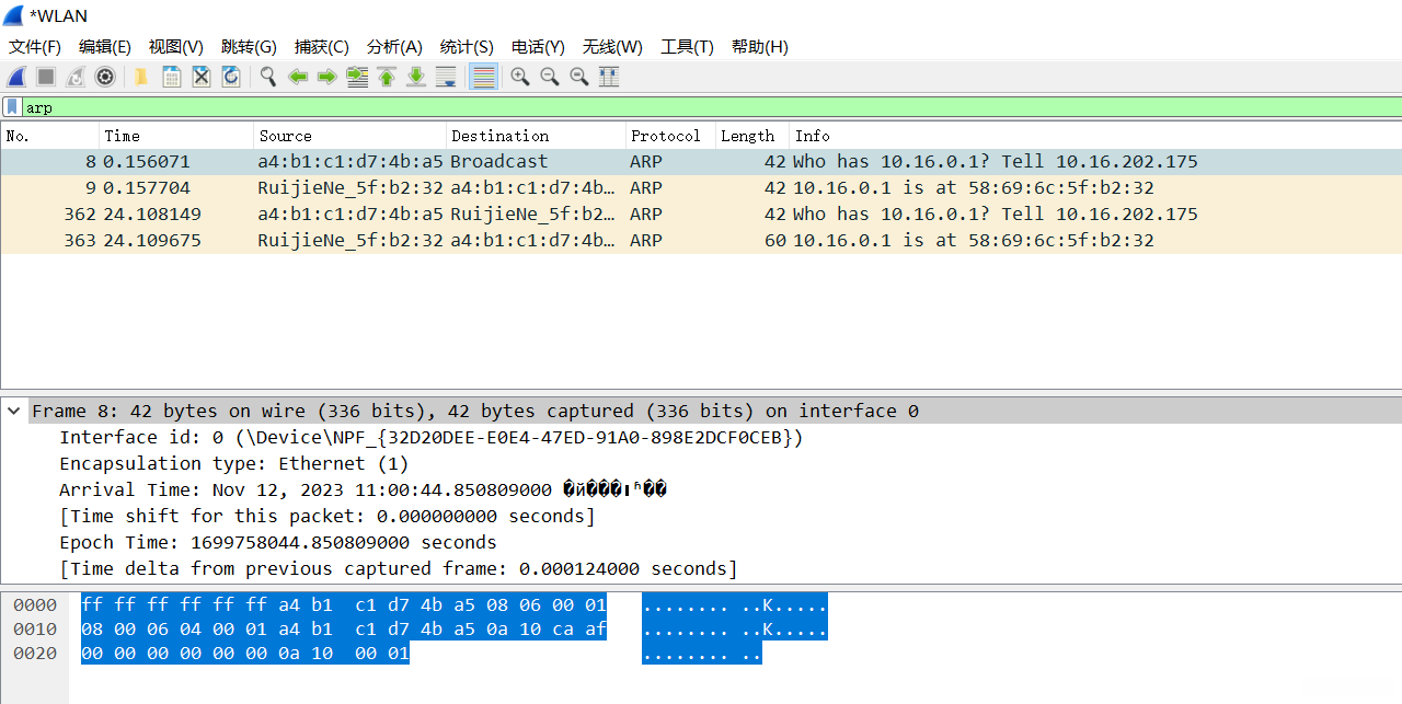 应答info字段:10.16.0.1 is at 58:69:6c:5f:b2:32