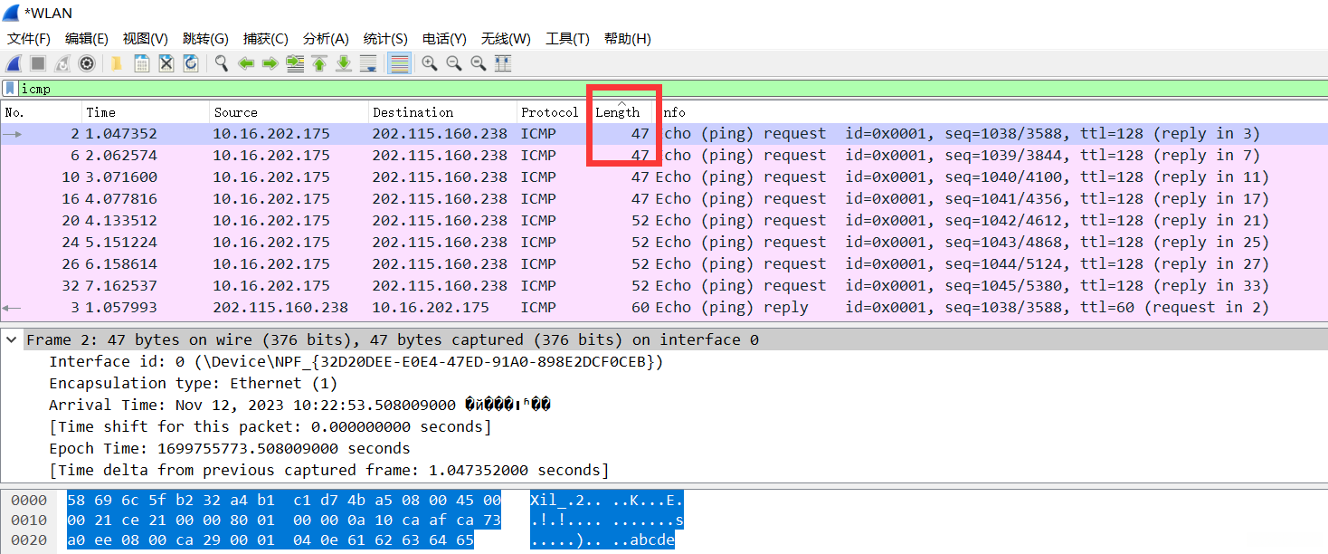 5)在cmd窗口中输入ping www.swust.edu.cn -l 4000,待ping结束后,停止捕获。