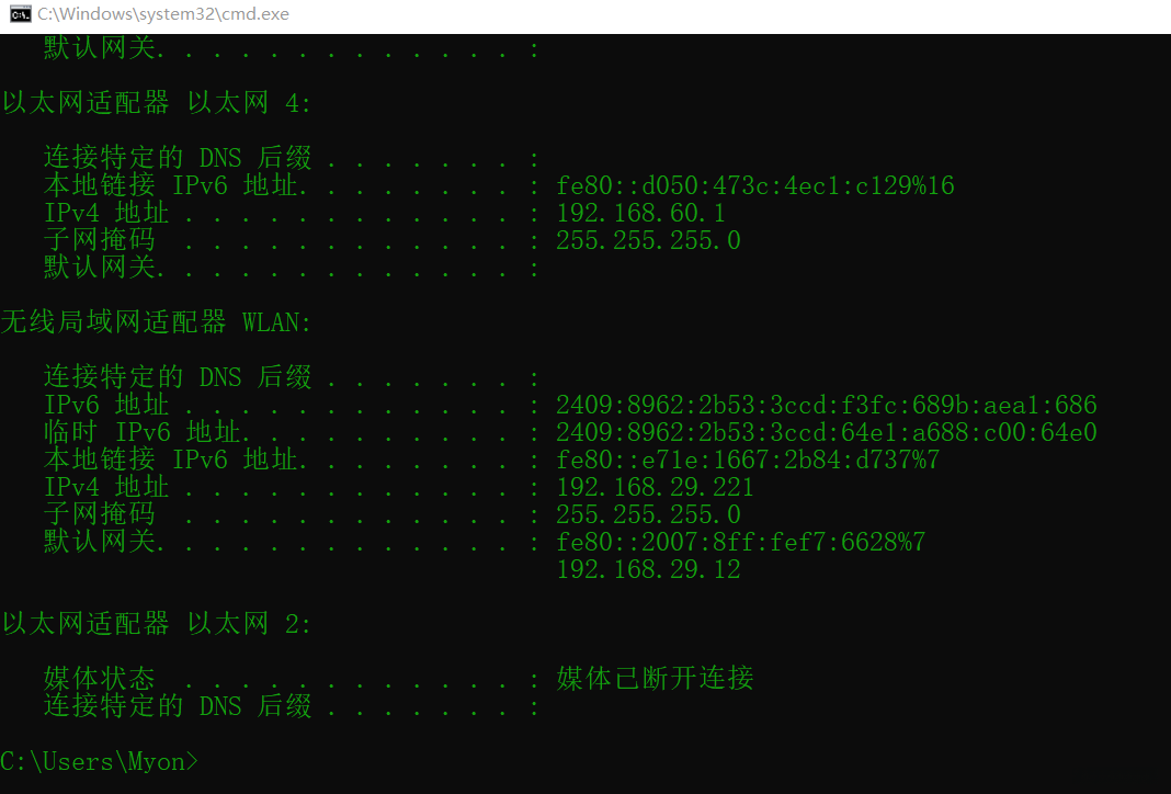 4-1)你的主机的48位以太网地址(物理地址)是多少?