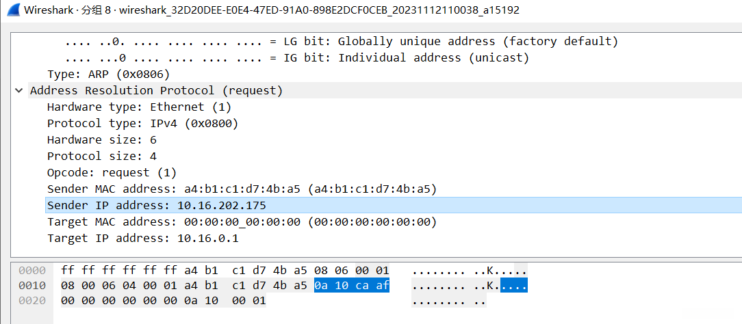 Arp询问Info字段:Who has 10.16.0.1? Tell 10.16.202.175
