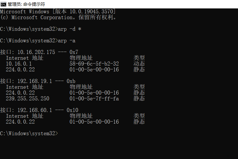 通过MS-DOS命令执行arp -d *,可以有效地删除主机上的ARP缓存信息。接着,持续运行arp -a命令,观察ARP缓存信息的变化情况,其原因是什么?