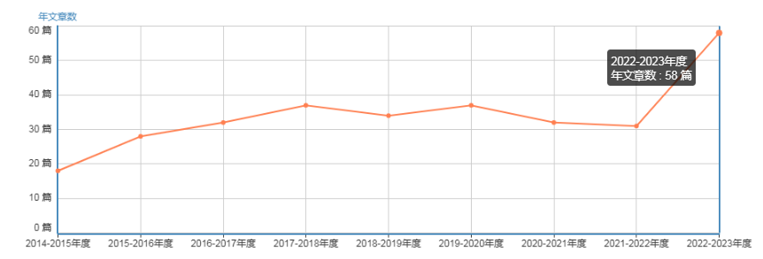 2022发表文章58篇,国人占比5.78%,占比较低。