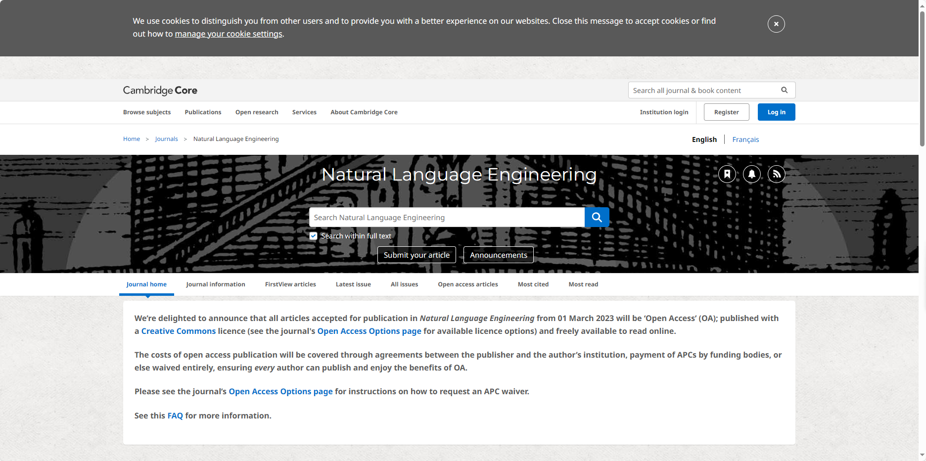 《自然语言工程》是一本高质量的开放获取期刊。它满足了语言技术领域的专业人士与研究者的需求。从理论研究、语料库构建(如翻译和词典编纂)、计算机科学以及工程学等多个学科视角来看,《自然语言工程》提供了丰富的资源以满足这些需求。其主要目标是弥合传统计算语言学研究与潜在实际应用之间的鸿沟。除了发表多样化的研究主题外,《自然语言工程》还出版了多样化的特刊。这些特刊涵盖了特定自然语言处理方法、任务或应用的重点专题专辑。此外,《自然语言工程》还热忱接收综述性论文,并定期推出《行业观察》以及《新兴趋势》专栏之外的内容还包括书评。