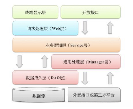 各模块之间的层级结构中不允许出现跨层次或逆向的引用关系;例如:web layer → API layer → service layer → service/manager layer → DAL;