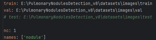 validation_set: E:\PulmonaryNodulesDetection_v8\datasets\images\val 验证数据集位置