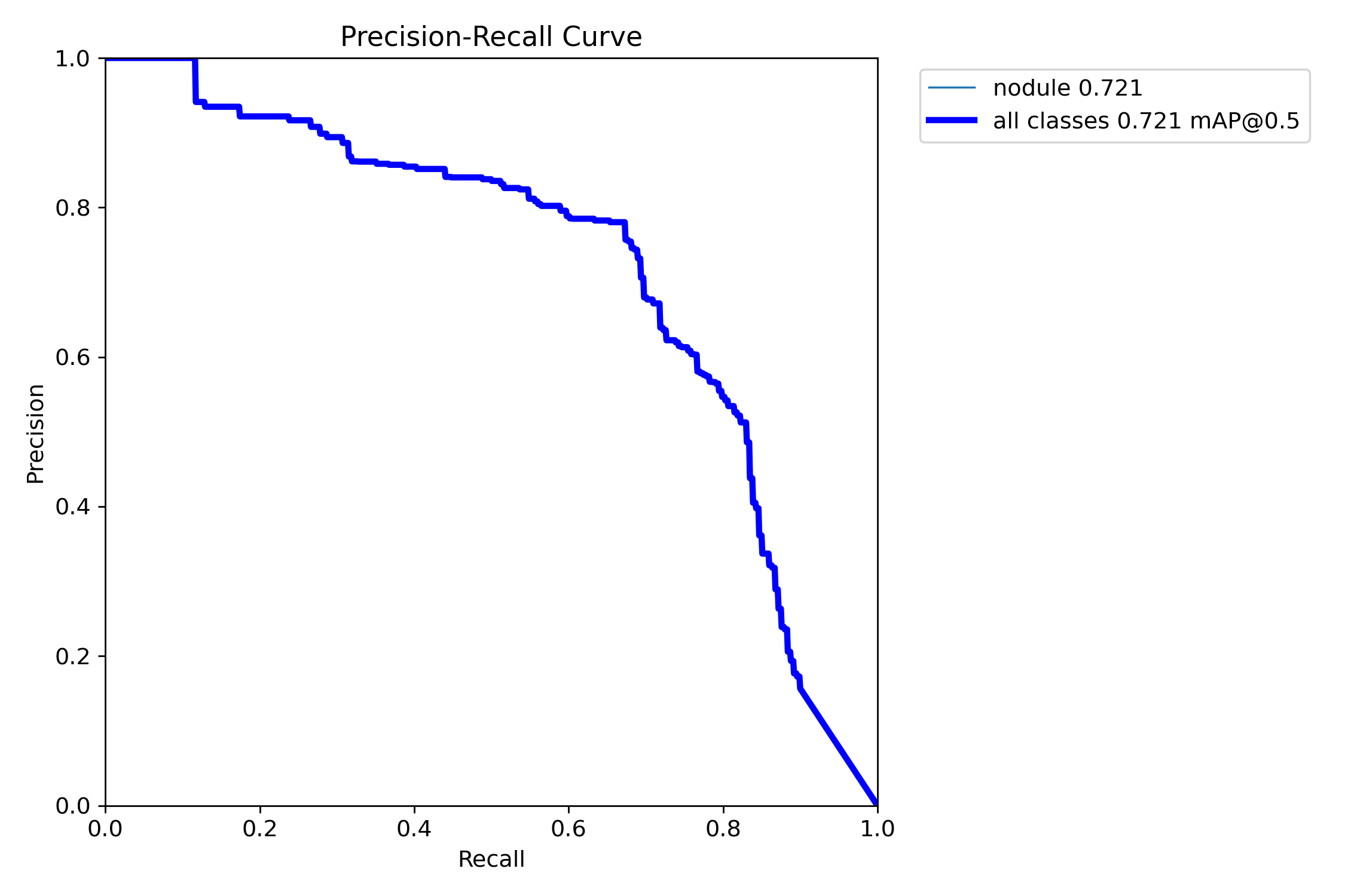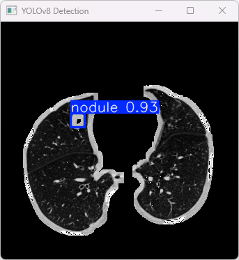 此YOLOv8模型识别出图像中的一个结节。其处理流程包含预处理、推理及后处理步骤。整体运行效率较高。结果存储在预先指定的文件夹中。