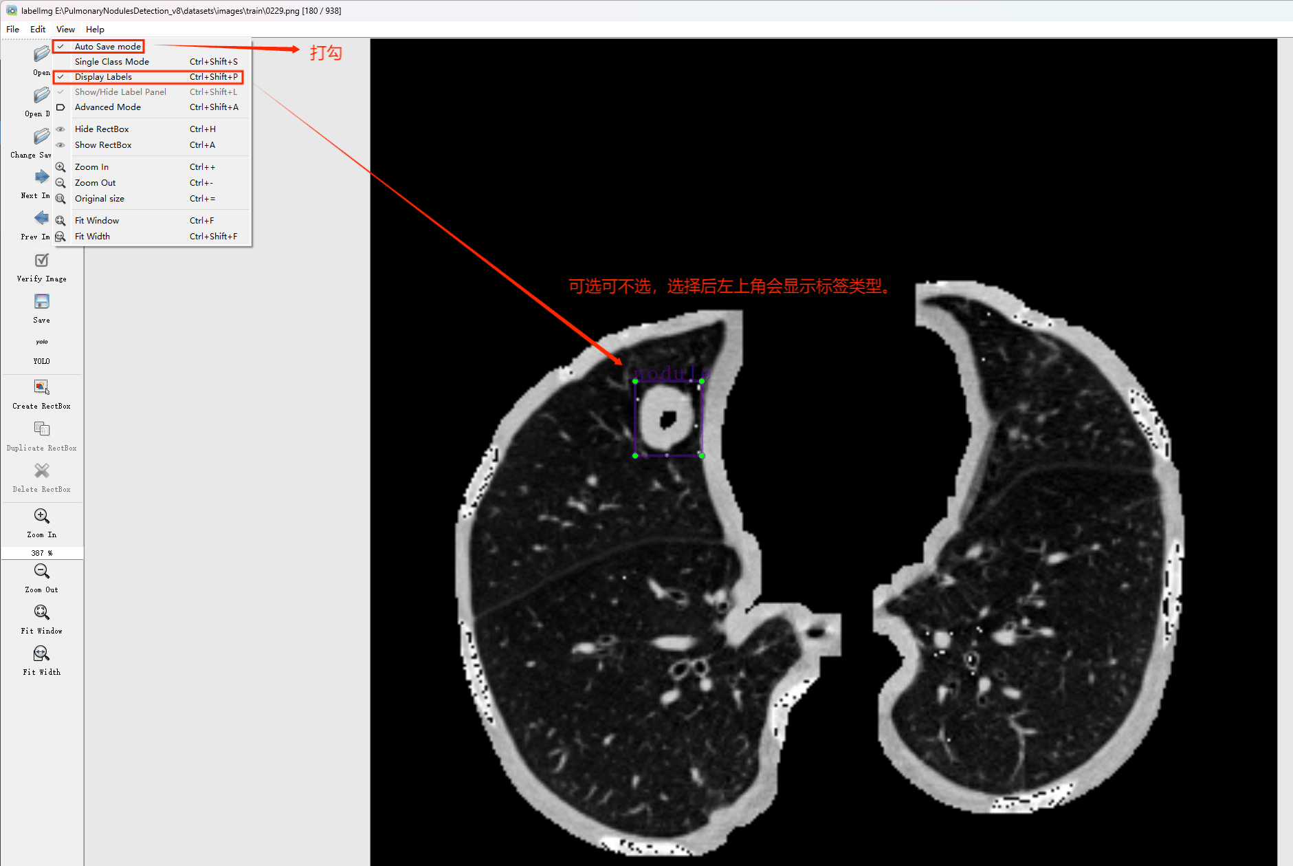 (1)涉及的图像路径是:E:\PulmonaryNodulesDetection_v8\TestFiles\0229.png。