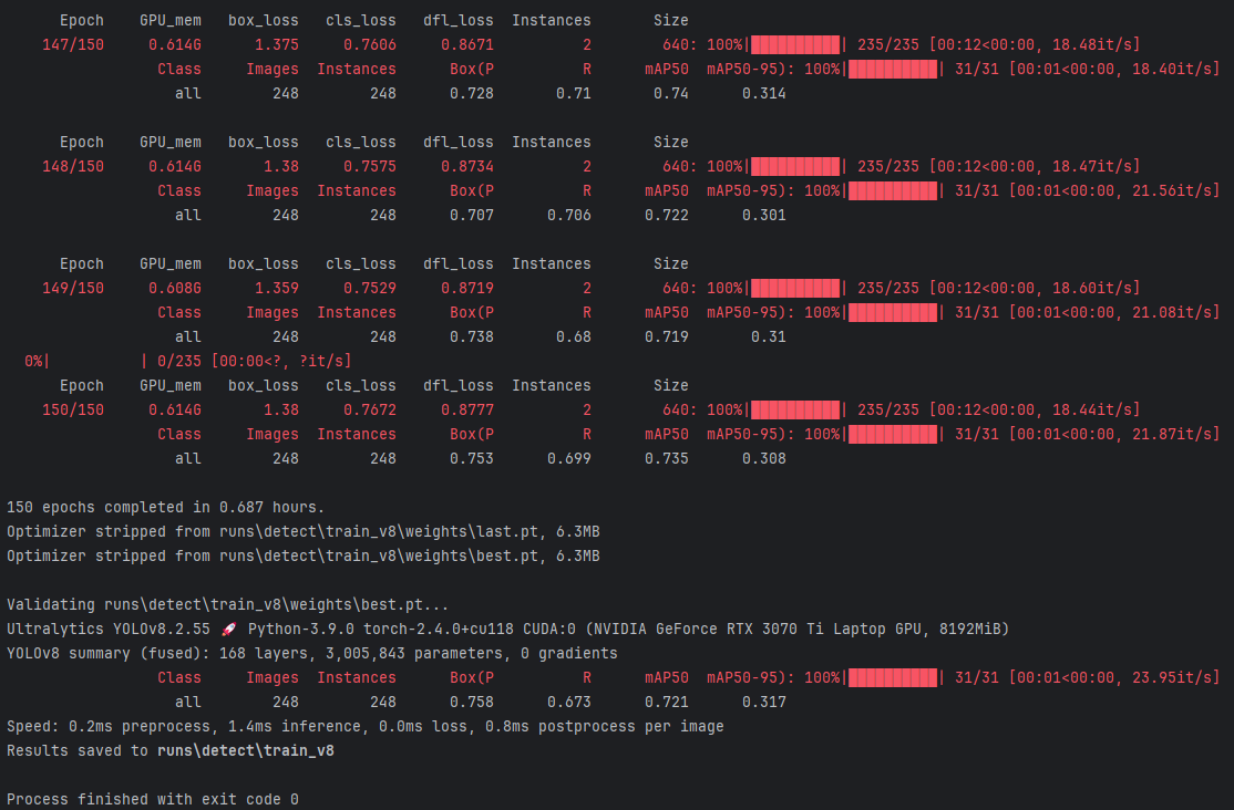 (1)模型在训练了150轮后,总共耗时0.687小时。