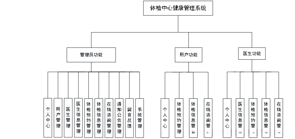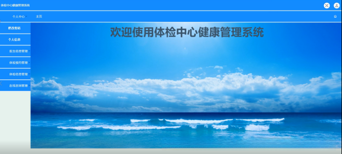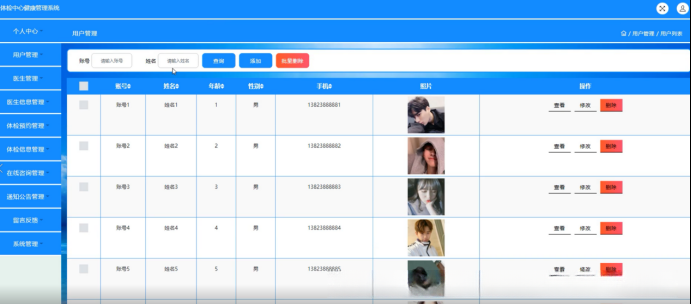 通过登录系统访问体检中心健康管理系统后,在线浏览包括个人中心、用户管理和医生相关信息在内的多个功能模块,并根据需要完成相应的详细操作(如图5-9所示)。