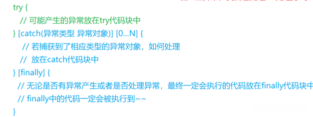 异常的捕获并处理: try - catch - finally 代码块