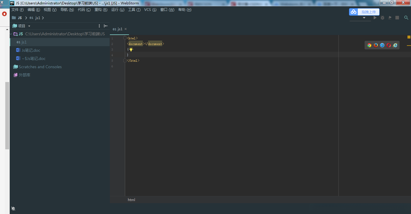 汉化完毕,重新打开Webstorm就可以显示中文了。