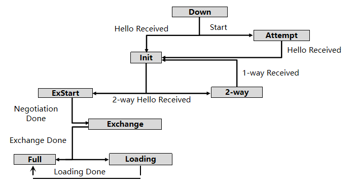 | Down | 这是邻居的初始状态,表示没有从邻居收到任何信息 |