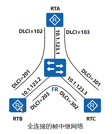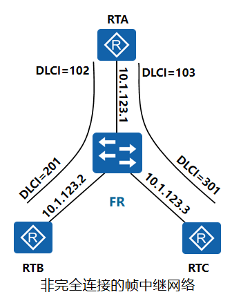 NBMA(non-broadcast multiple access)型网络的例子:通过全互连的