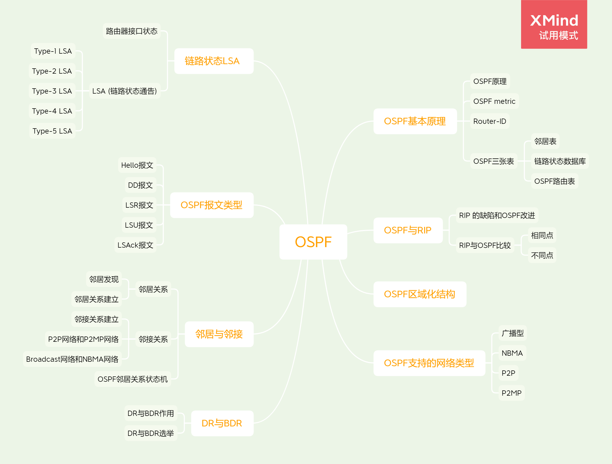 OSPF能够支持的网络类型,指的是OSPF能够支持的二层网络的类型,OSPF能够支持广播网络、NBMA(Non-Boadcat Multi-Access)、点到点网络(P2P)和点到多点网络(P2MP) 。