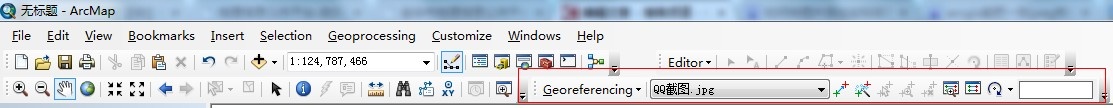 (2)把需要进行纠正的影像增加到ArcMap 中,会发现 Georeferncing 工具条中的工具被激活。