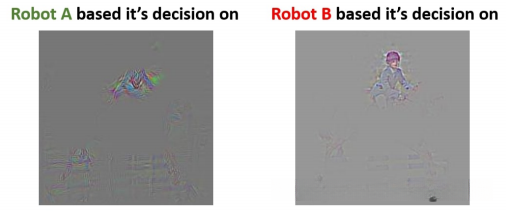 单纯从模型预测结果无法判断模型的好坏,但是有下面这样的可视化,就可以知道,如果都是预测为人,右图对应模型的判断依据更靠谱一些