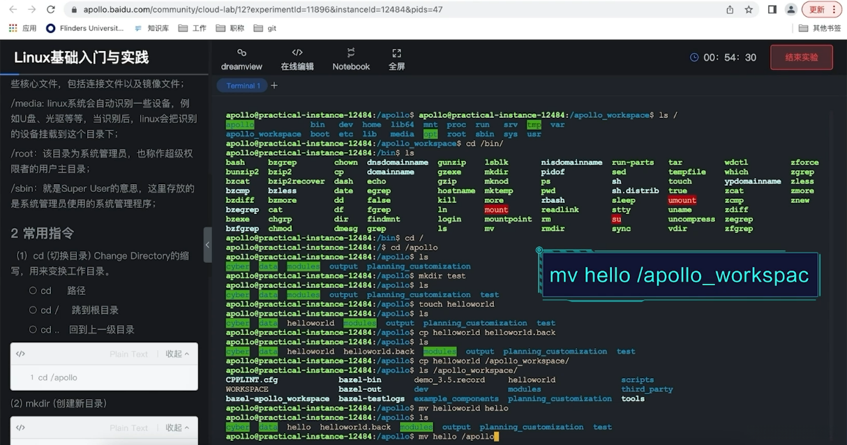 云端:Apollo Studio云实验室之《 Linux基础入门与实践》实验项目