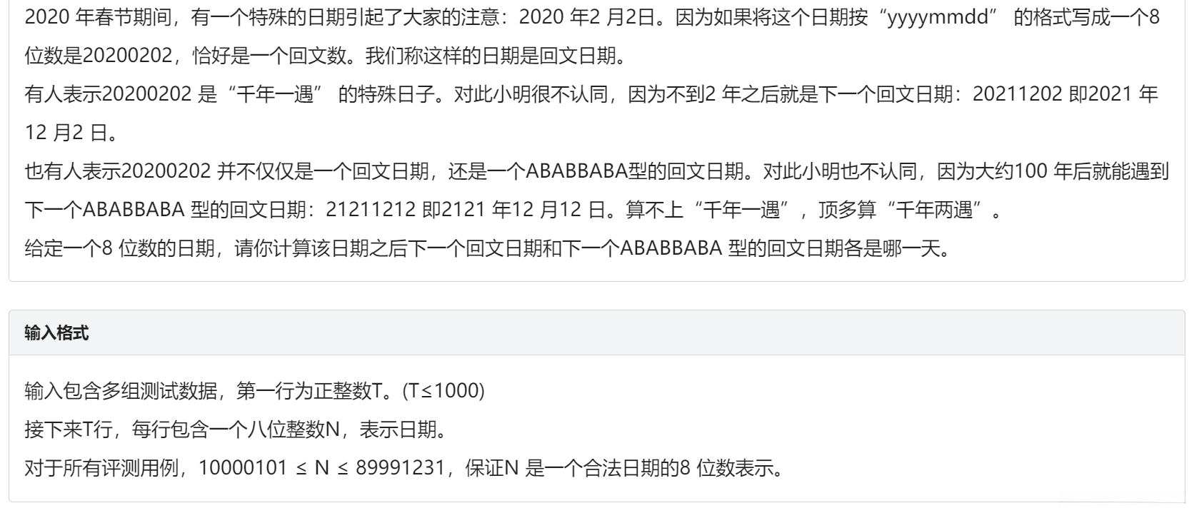 思路:模拟,但是要注意闰年的判断和每个月的月数。