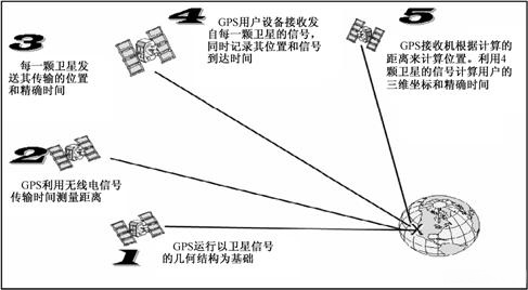 通过借助卫星发射的测距信号来确定位置,将空间中的卫星作为已知点,测量卫星到地面点的距离,然后通过这些距离来确定接收设备在地球表面或空中的位置。