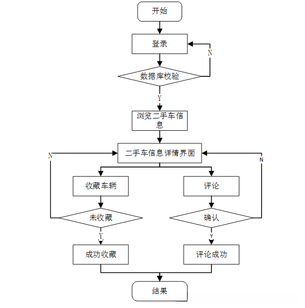 在校园二手车交易系统中,用户的功能主要包含二手车信息的查看与浏览,以及对相关信息实施收藏与评价的相关操作,以下将从技术层面对其功能进行具体实现方案的设计
