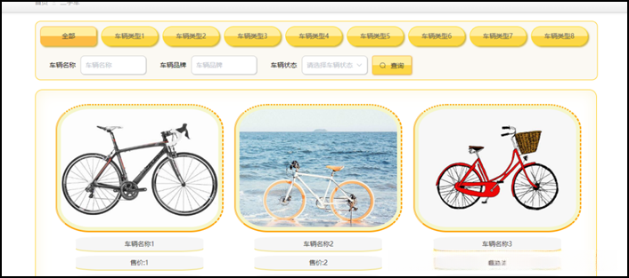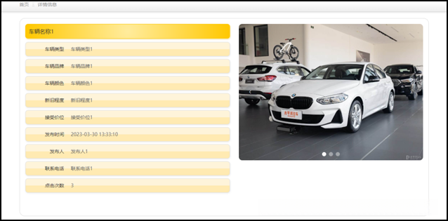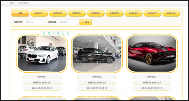 - 二手车信息浏览功能:网站上会以大图片列表的形式展示商品,并根据车辆类型分类设置列表。