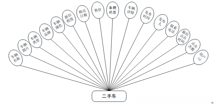 在校园二手车交易系统的数据库设计中,在校学生通过系统E-R模型能够体现数据库中的各种实体信息及其相互关系,在深入研究校园二手车交易系统的E-R模型之后,在校学生建立数据表的过程也会相对简便。
