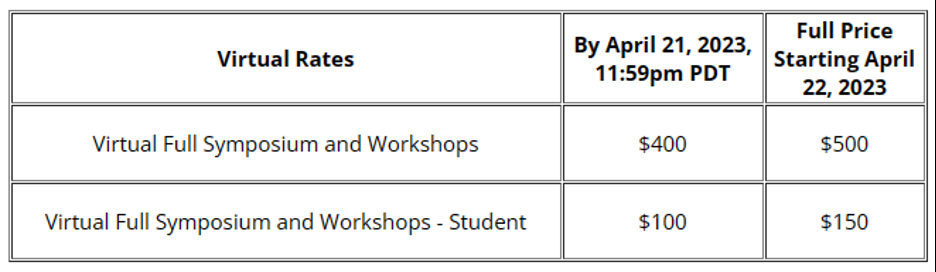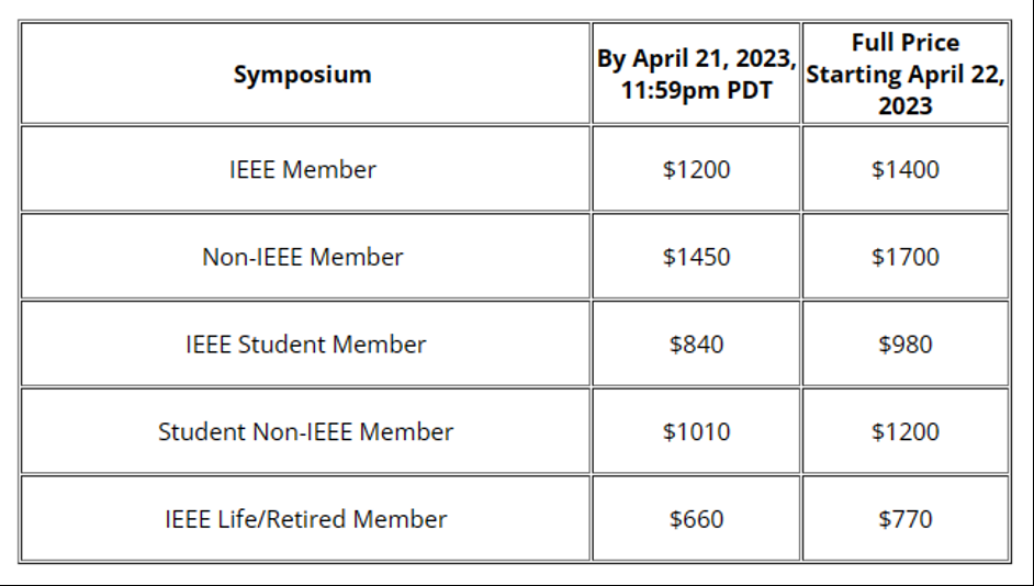 S&P'23的注册分为线上和线下两种,本别设置了早鸟票价和正常注册。线下注册为840刀起,线上注册为100刀起: