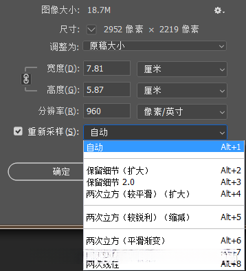 在测试的时候,网络预测左视图在最佳scale下的视差图,这个视差图和左视图有相同的分辨率。在Photoshop的帮助下理解了分辨率,在固定图像尺寸下(例如7.81cm×2.87cm),提高分辨率(像素/英寸)就会提高整幅图像的像素点个数。 那么就需要上采样,PS上采样方法有这些