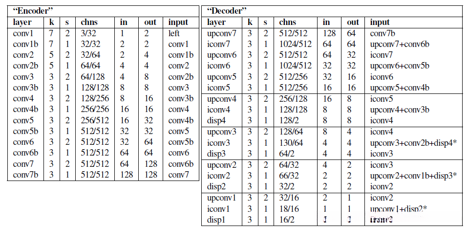 作者把他提出来的三种损失函数分别称为Appearance Matching Loss[目的是预测得到的左视图和输入的左视图看起来像], Disparity Smoothness Loss[目的是得到的视差图平滑], and Left-Right Disparity Consistency Loss[预测出来的右视差图根据预测出来的左视差图得到新的左视差图,这个新的左视差图要等于预测出来的左视差图,目的是左右视差图的一致性] 。